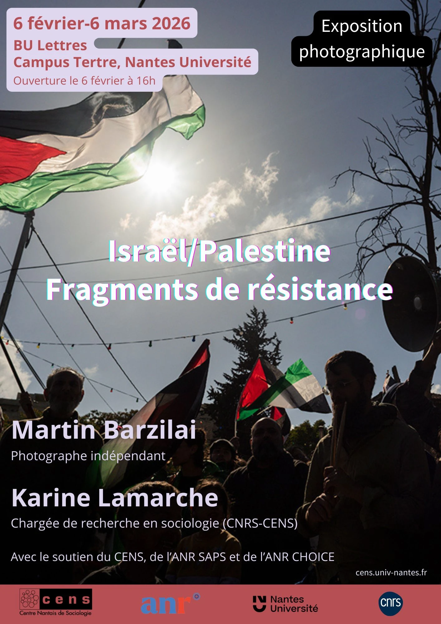 Née d’une collaboration artistique et scientifique entre Martin Barzilai, photographe, et Karine Lamarche, sociologue au CNRS, cette exposition, qui présente de nombreuses photographies, s'inscrit dans le cadre du programme de recherche CHOICE*, financé par l'Agence nationale de la recherche (ANR) et hébergé au Centre nantais de sociologie (CENS - UMR 6025). Cette recherche collective vise à appréhender la variété des formes d’engagements et de positionnements critiques adoptés par les Israélien·nes s’opposant à la domination et à la violence coloniales imposées par leur pays aux Palestinien·nes. Plus précisément, elle s'intéresse aux manières de nommer, de dénoncer et de s'opposer à cette domination.