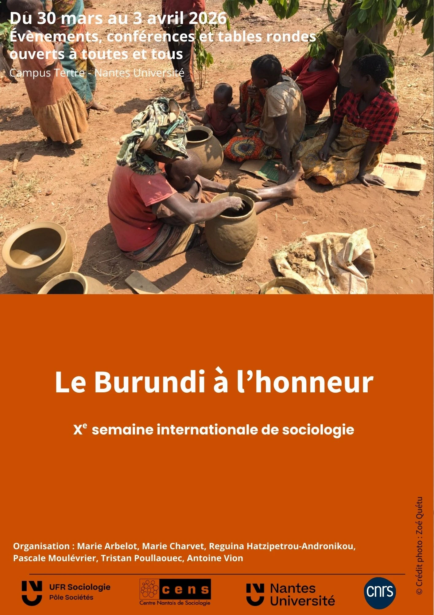 Pour sa dixième édition, l'UFR de sociologie, en partenariat avec le CENS, met à l'honneur le Burundi durant une semaine, grâce à des conférences, table ronde et exposition photographique ; rendez-vous dans le bâtiment Tertre.